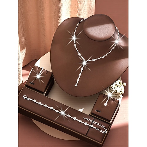 set di gioielli da donna con strass dorati: elegante collana a forma di Y, orecchini pendenti bracciale, accessori di cristallo scintillanti per balli di fine anno, feste eventi formali