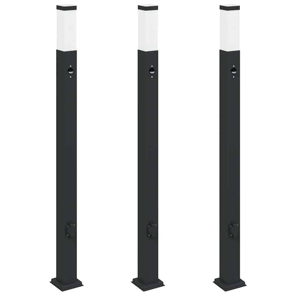 vidaXL Pollerleuchten mit Sensor&Steckdose 3 Stk. 110 cm Schwarz IP44
