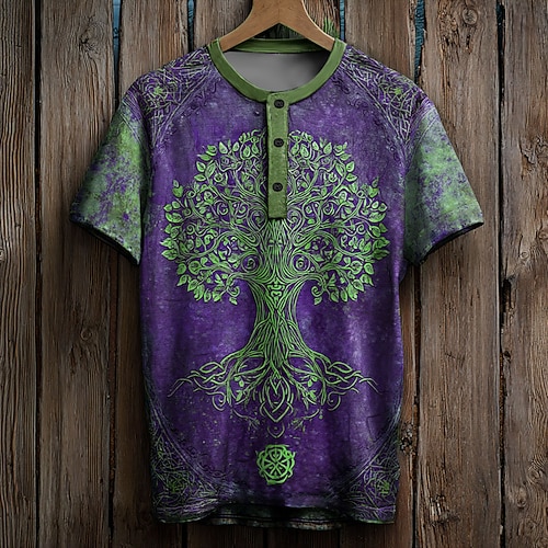 Per uomo Grafico Albero di Natale Maglietta Maglia Henley Manica Corta Designer Retrò Vintage Casual Casuale Quotidiano Streetwear Estate Primavera Tutte le stagioni Blu Viola Marrone Henley