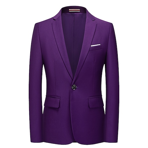 Per uomo Blazer Affari Cocktail party Ricevimento di matrimonio Festa Primavera Autunno Poliestere Abbronzante Tasca Bottoni Confortevole Monopetto Giacca Rosso Blu Viola Oro
