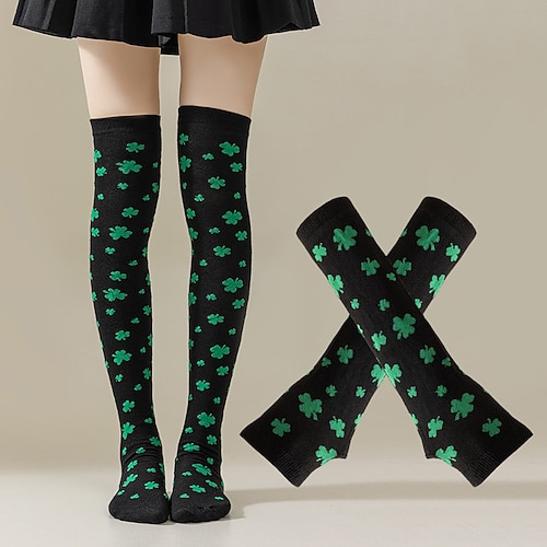 San Patrizio 2026 Clover Trifoglio Irlandese fortunato Carnevale Guanti Calzini Innovativo Divertente Adulti Per donna Carnevale Giorno di San Patrizio Feste Costume di Carnevale facile Vestirsi
