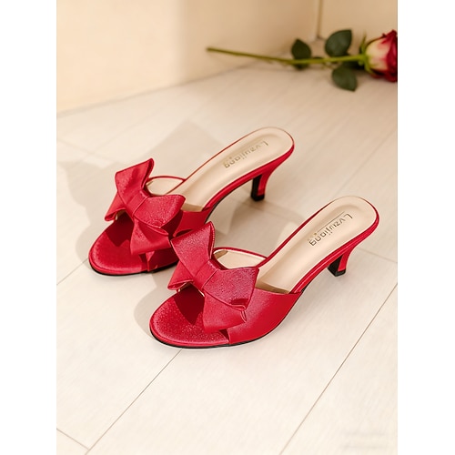 pantofole da donna in raso rosa con fiocco oversize e punta aperta: eleganti pantofole con tacco per San Valentino, appuntamenti romantici e occasioni speciali