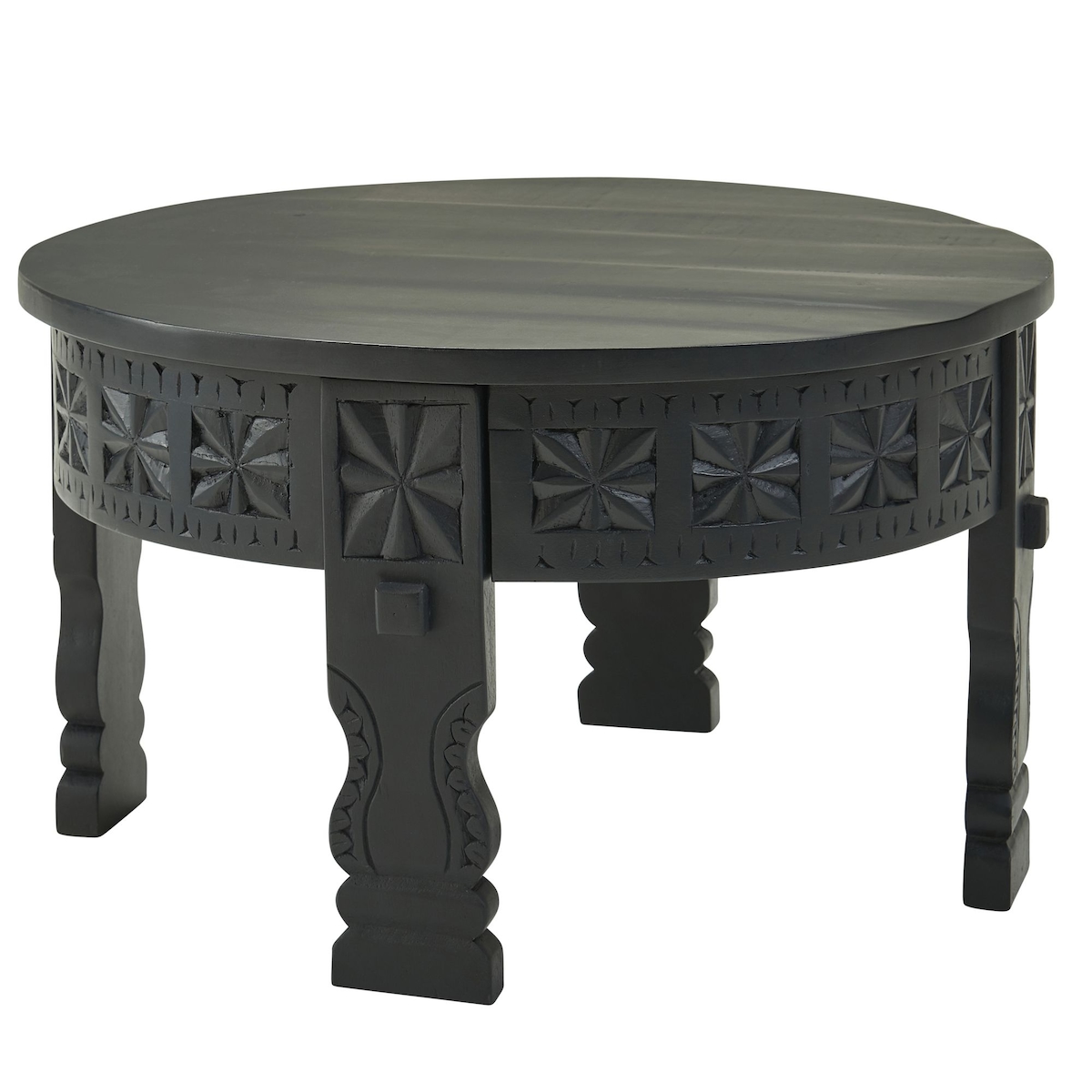 Orientalischer Couchtisch, Schwarz lackiertes Massivholz, Handgefertigt. 60x60x36 cm | Kadima Design