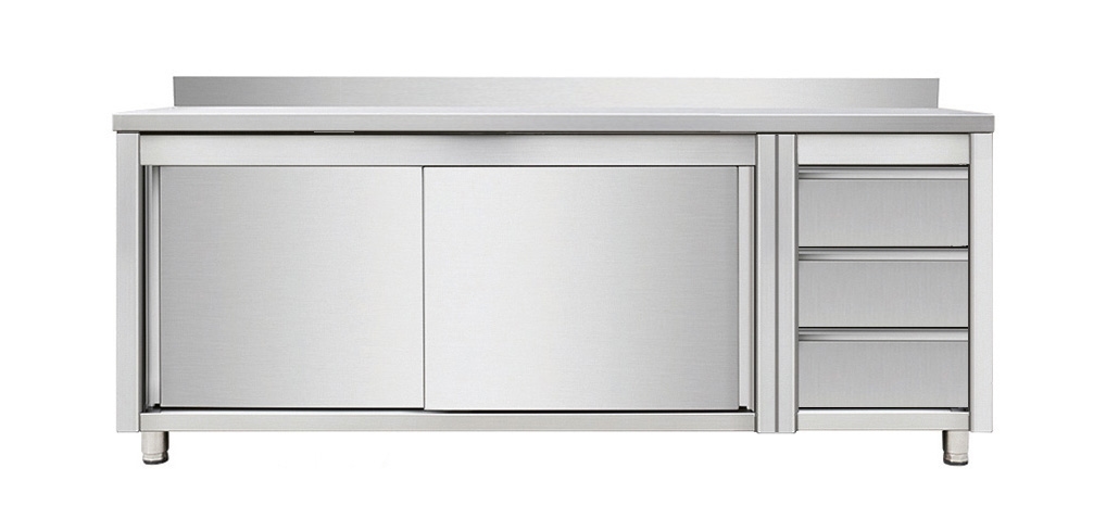 Skyrainbow Arbeitsschrank mit Schiebetüren und Schubladenblock rechts, mit Aufkantung, 2000 x 700