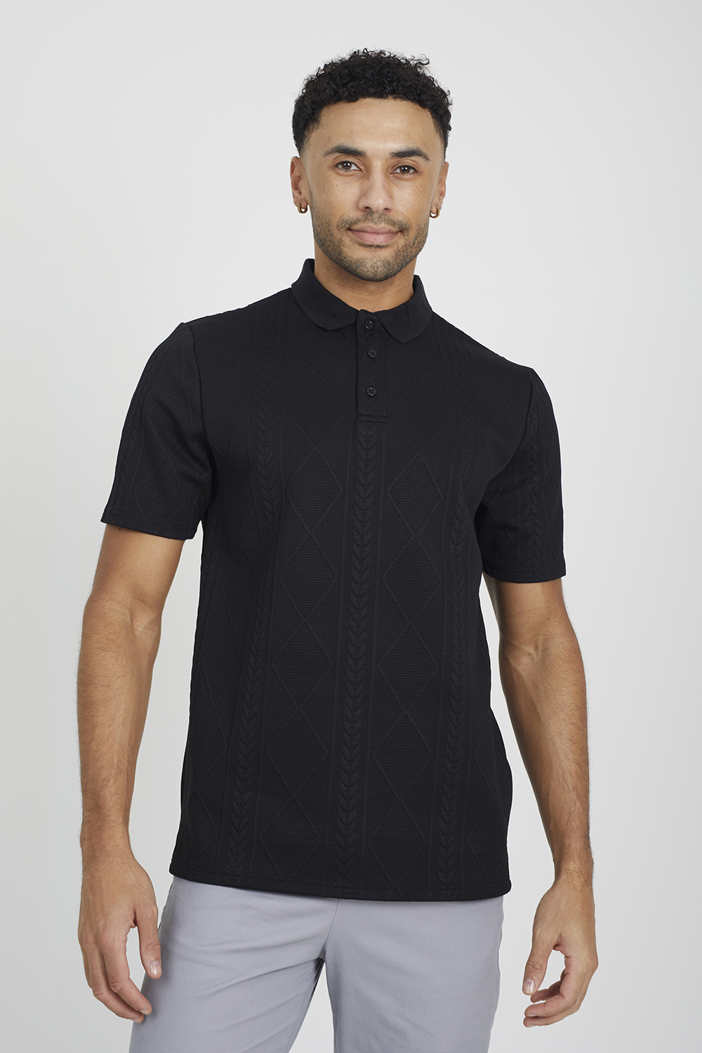 Brave Soul Mens Black 'brandon' Jaquard Knit Polo Shirt - Size Large | Brave Soul Sale | Discount Designer Brands