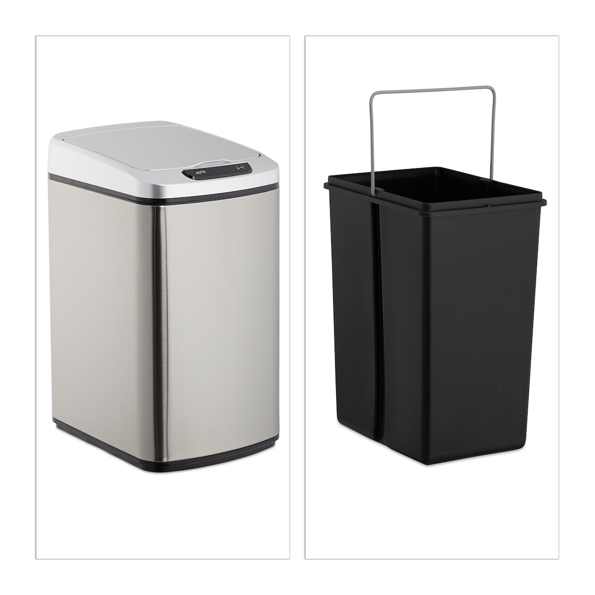 Relaxdays Sensor Mülleimer 12l, eckiger Abfalleimer mit Deckel & Inneneimer, Küche & Bad, Automatik Mülleimer, silber