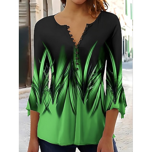 Per donna Blusa Ombre Grafico Astratto Elegante Vintage Manica 3/4 Scollo a V Top lunghi Quotidiano Uscire Bottoni Blu Rosso Arancione Verde Estate Primavera Autunno