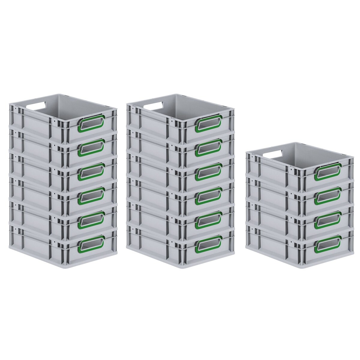 PROREGAL 16x Eurobox NextGen Color | HxBxT 12x30x40cm | 11 Liter | Griffe grün offen | Glatter Boden | Eurobehälter