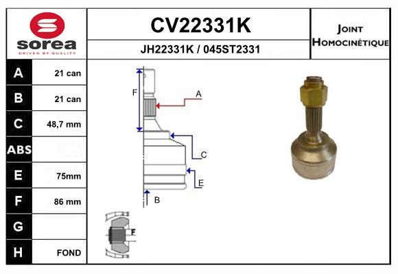 EAI Gelenksatz, Antriebswelle CV22331K vorne rechts links 75mm für CITROEN PEUGEOT