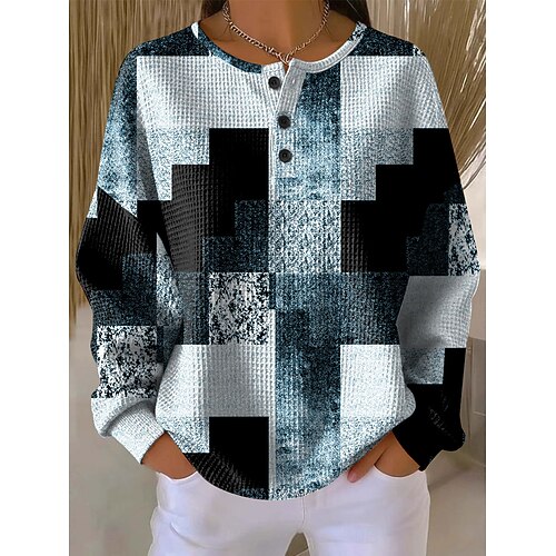 Per uomo Grafico Plaid Blocco di colori Maglia Henley Maglietta a nido d'ape Manica Lunga Stampa 3D Moda Designer Casual Sport all'Aperto Ferie Festival Primavera Autunno Blu Arancione Verde Grigio