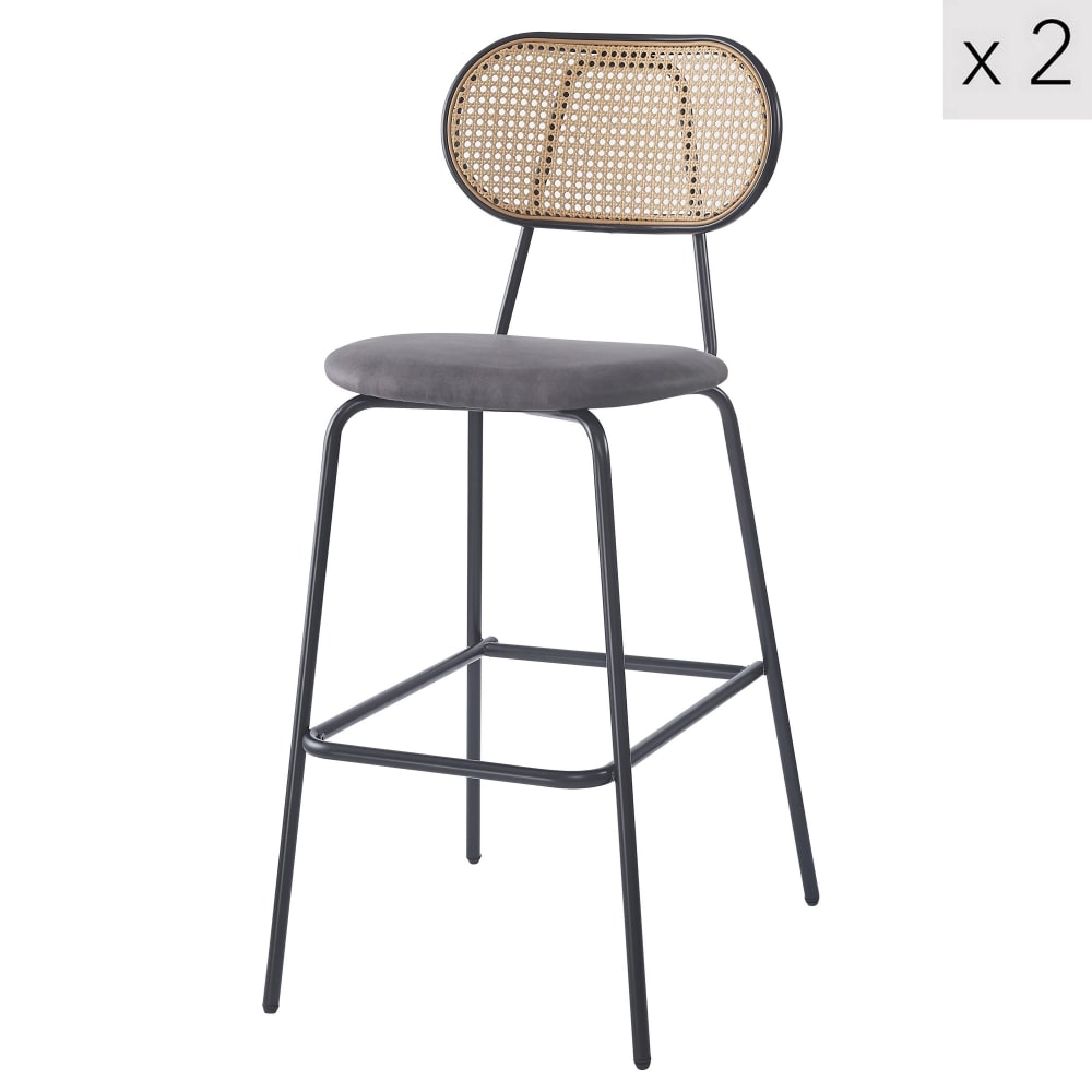 Set 2 alti sgabelli industriali in acciaio e rattan nero