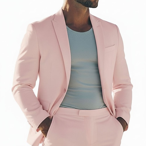 Uomo Matrimonio Feste Completi Bavero sciallato Dentellato Nero Rosa Moda Quotidiano Tinta unita Vestibilità su misura 2 pezzi Monopetto a un bottone
