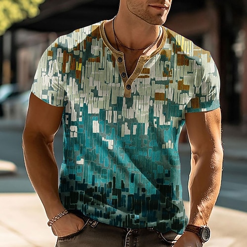 Per uomo Geometrico Astratto Maglietta Maglia Henley Manica Corta Designer Moderno Casual Casuale Quotidiano Streetwear Estate Primavera Verde chiaro Henley Maglietta Henley