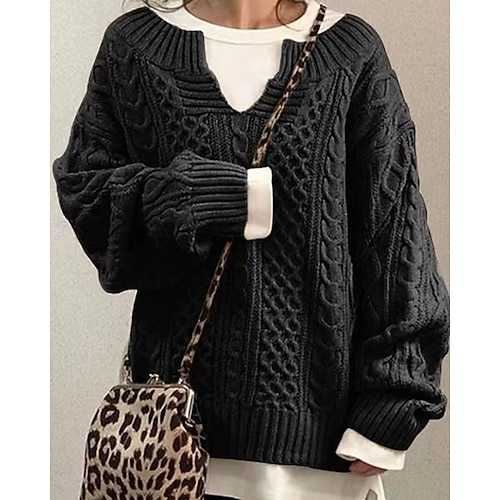 Per donna Felpa Maglione Elegante Moda Streetwear Tinta unica Scollo a V Lavorato a maglia Manica Lunga Top Regolari Maglia All'aperto Casa Quotidiano Nero Verde chiaro Autunno Inverno