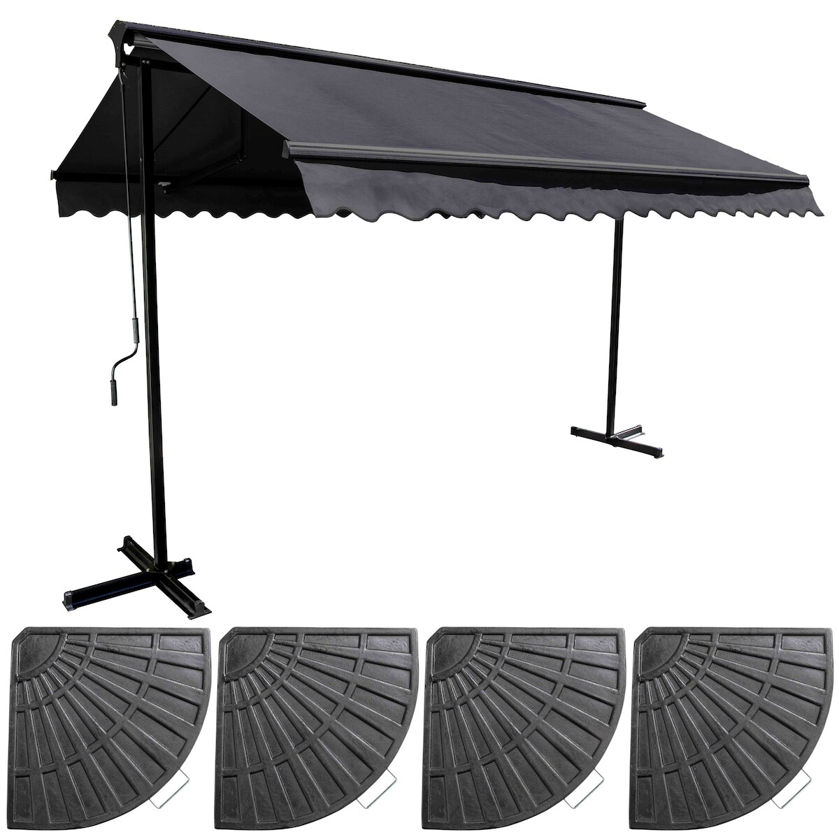 Oviala Business Set aus Markise mit 3 x 3 m und 4 grauen Beschwerungsplatten - Oviala