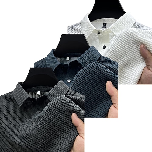 Polo da uomo 3 pezzi, maglietta da golf casual, classica, a maniche corte, alla moda, basic, tinta unita, confezione multipla da 3 pezzi, estiva, per tutte le stagioni, vestibilità regolare