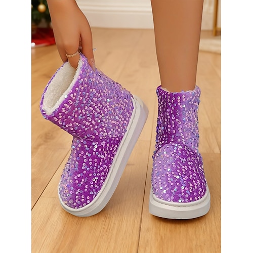 stivaletti da donna con paillettes viola scintillanti – stivaletti da neve invernali con glitter e calda fodera in pile per casa e camera da letto, feste, discoteche e abbigliamento casual