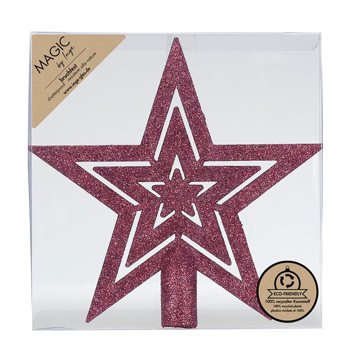 Inges Magic & Goodz Christbaumspitze Stern 21,5cm Kunststoff mit Glitzer - Bordeaux Red
