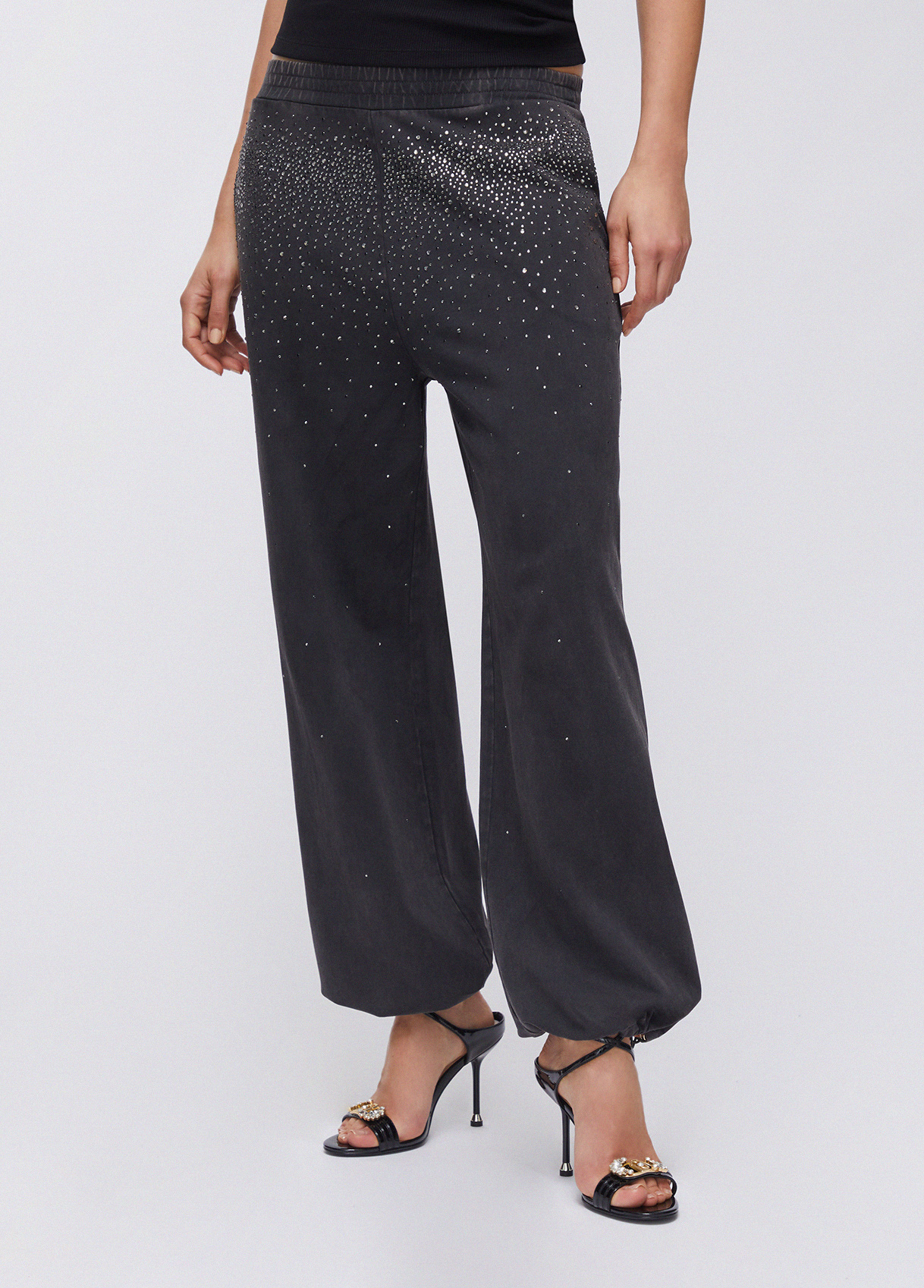 Liu Jo Verwaschene Jerseyhose Mit Strass, Schwarz, XXS