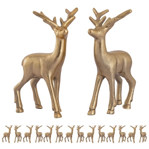 Amagohome Deko Figur Hirsch VE 8x 2 Stück Tischdekoration Tierfigur Metall Weihnachtsdeko : gold