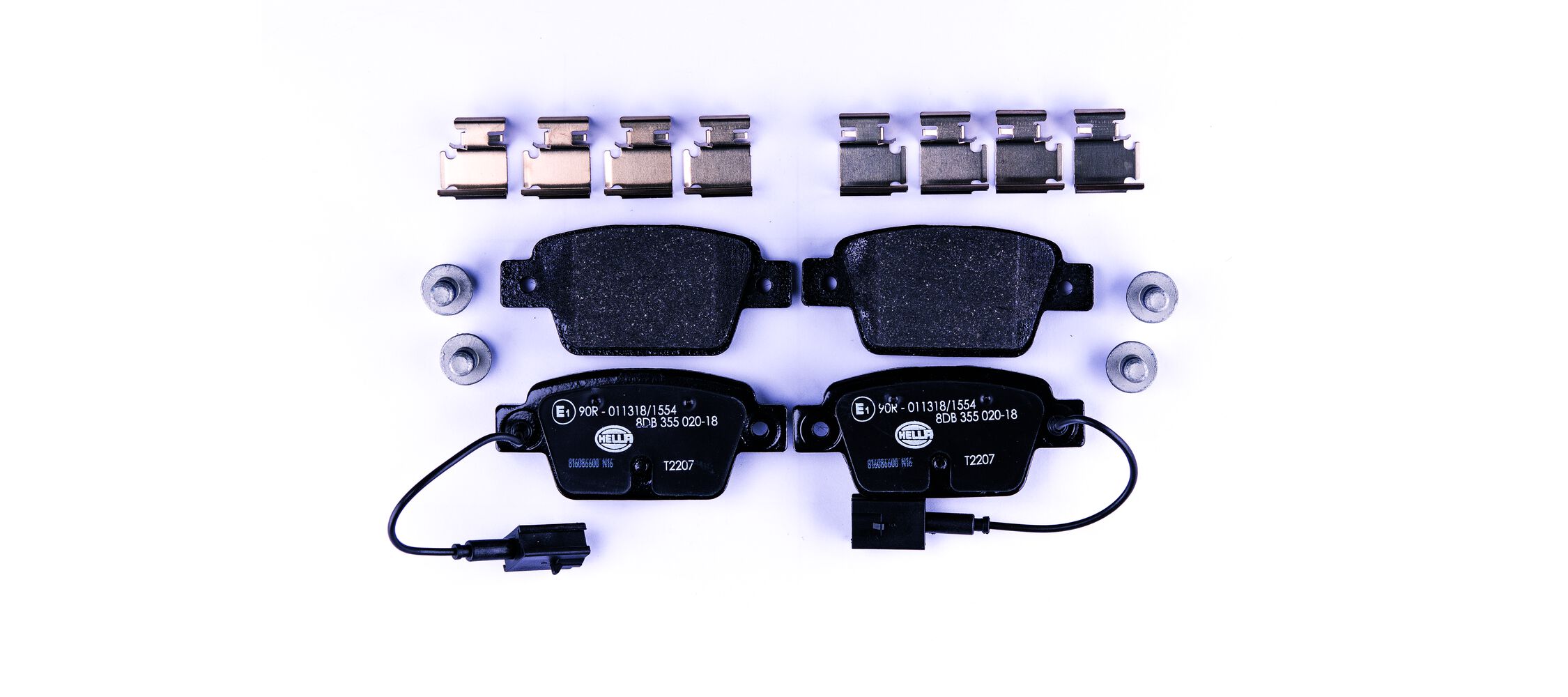 HELLA Bremsbelagsatz, Scheibenbremse hinten rechts links mit Zubehör für FERRARI FIAT AMC LANCIA D1620 77363518 71770114 8DB 355 020-181