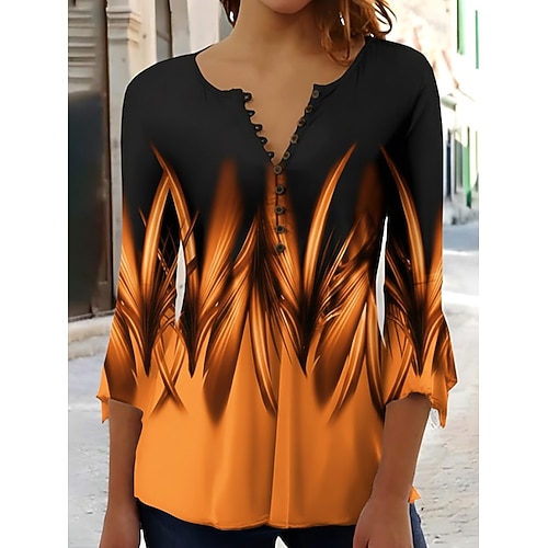 Per donna Blusa Ombre Grafico Astratto Elegante Vintage Manica 3/4 Scollo a V Top lunghi Quotidiano Uscire Bottoni Blu Rosso Arancione Verde Estate Primavera Autunno