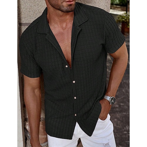 Per uomo Camicia Tessuto Camicia casual Camicia con Bottoni Blu Nero Bianco Verde Kaki Manica Corta Semplice Colletto a Camicia Casuale Quotidiano Traforato Abbigliamento Moda Moderno Casual