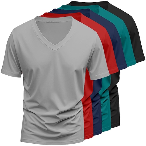 Maglietta da uomo a maniche corte, 5 pezzi, con scollo a V, estiva, per tutte le stagioni, tinta unita, basic, casual, confezione multipla da 5 pezzi, per le vacanze, da strada, casual, bianca, per