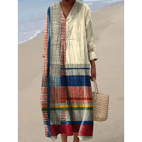 Per donna Abito maxi Vestito Estivo Abito a Tubino Vacanza Casual Spiaggia Uscire Vestibilità comoda Grafico Geometrico Astratto Manica Lunga Scollo a V Nero Giallo Marrone chiaro Verde Estate