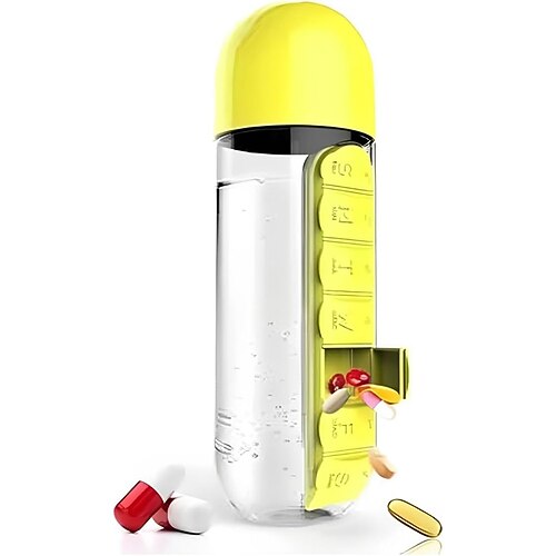 borraccia con organizer settimanale per pillole, 2 in 1, contenitore per medicinali, bicchiere per acqua, contenitore per medicinali, borraccia sportiva giornaliera da 20 once con organizer per