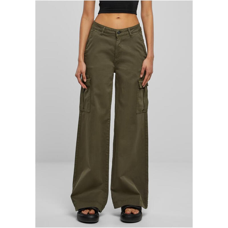 Urban Classics Damen-Cargo-Hose aus Twill-Stoff mit hoher Taille, Weite Beinpassform, oliv, 26