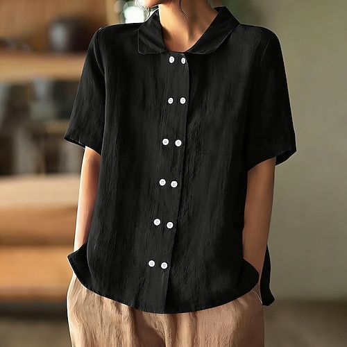 Per donna Camicia di lino Camicia Estiva Camicia con Bottoni Bottoni Tinta unica Semplice Quotidiano Elegante Casual Manica Corta Collo ripiegato Top Regolari Ferie Uscire Abbigliamento da vacanza
