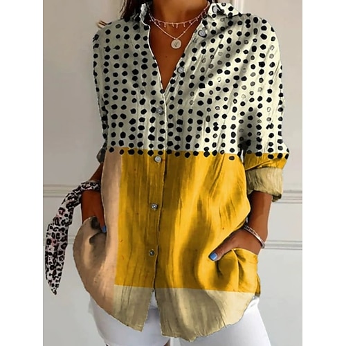 Per donna Camicia Bottoni Geometrico Quotidiano Elegante Essenziale Manica Lunga Colletto a Camicia Top Regolari Quotidiano Lavoro Ferie Nero Bianco Cachi Primavera Autunno