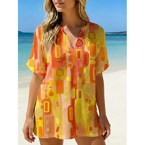 Per donna Camicia Camicia casual Camicia da Spiaggia Blusa Stampato Grafico Geometrico Elegante Classico Moderno Manica Corta Scollo a V Top Regolari Quotidiano Ferie Uscire Blu Giallo Estate