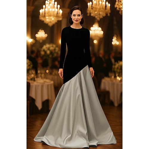 Linea ad A Lunghezza al pavimento Abito da Sera Da principessa Abito formale Elegante Setoso Manica Lunga Girocollo Matrimonio Formale Raso con Glitter Perle
