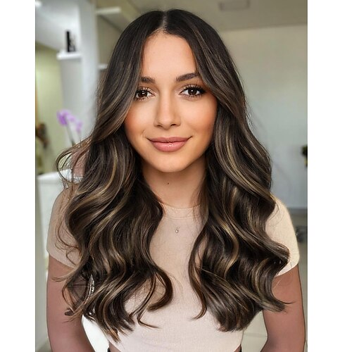 parrucche con frangia a tendina per le donne ondulate lunghe parrucche sintetiche da donna affascinanti con frangia ondulate naturali parrucche color cioccolato parrucca di media lunghezza capelli