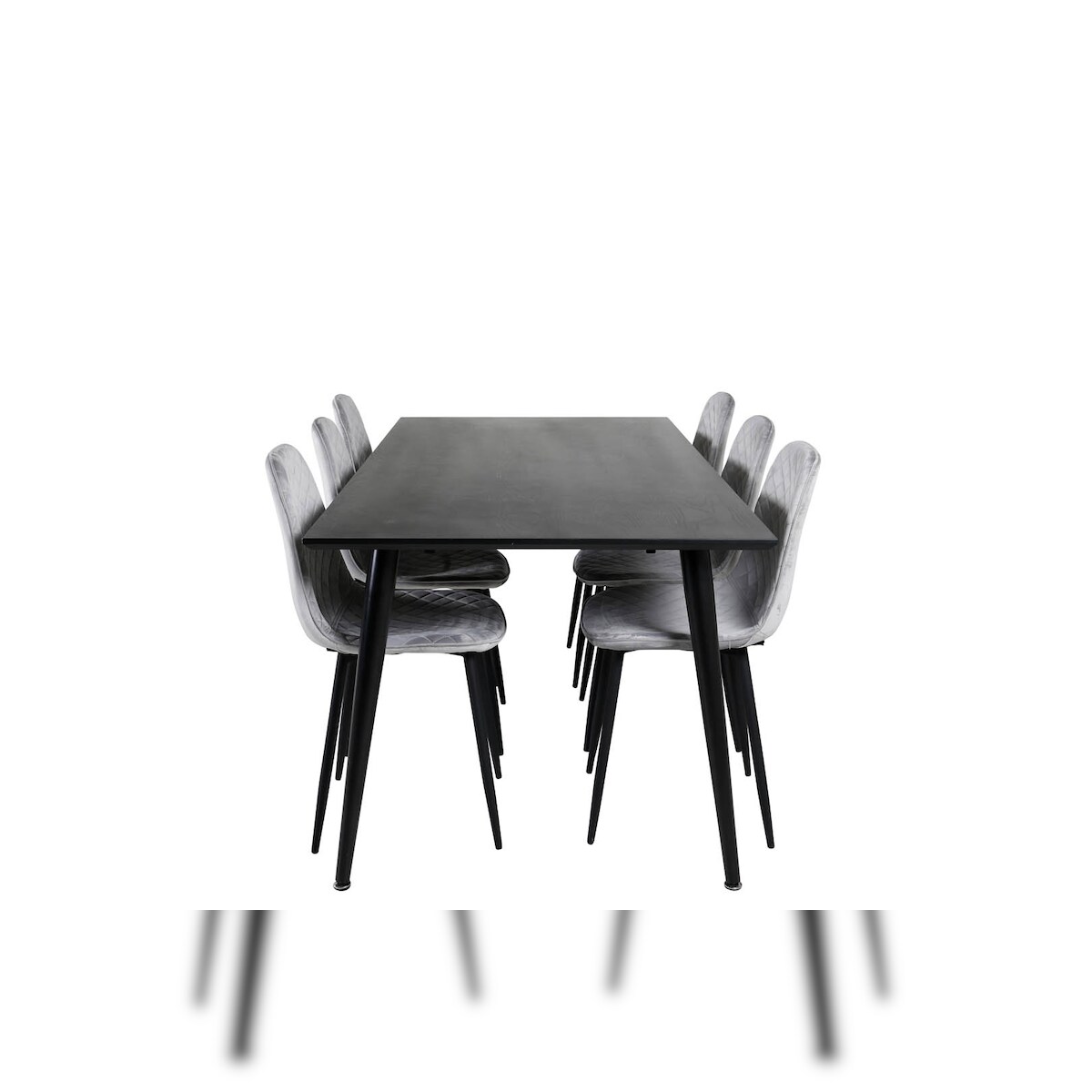 Dipp180x90BLBL Essgruppe Esstisch schwarz und 6 Polar Diamond Esszimmerstühle Velour grau.