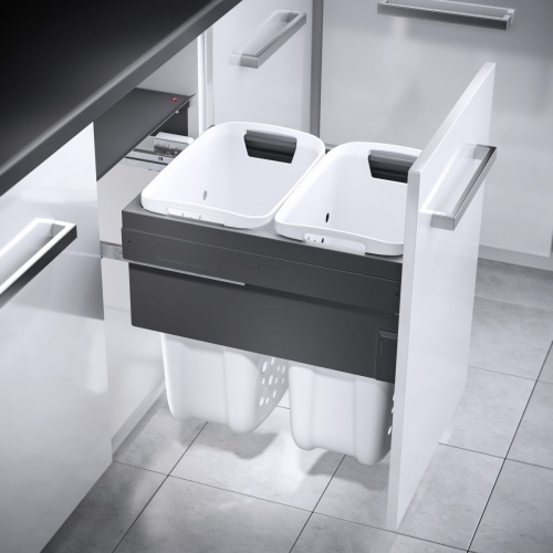 Sanipa 3way storage cabinet 45 cm, 1 laundry basket flap, 1 door stop right with push to open SM18537