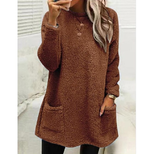 Per donna Felpa Pullover Tinta unica Sportivo Pagliaccetto Essenziale Manica lunga Rotonda Girocollo Maglie lunghe Strada Informale Tasche Marron Nero Bianco Verde chiaro Rosa Autunno inverno