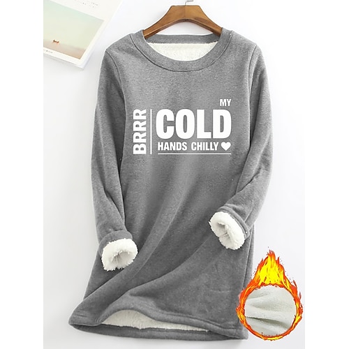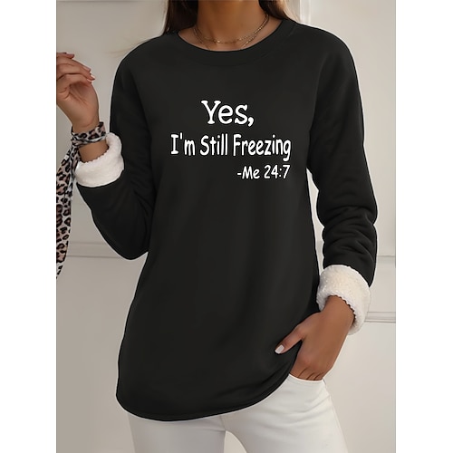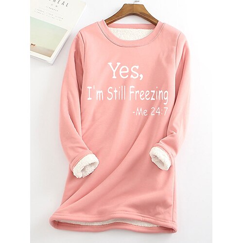 Felpa con fodera in pile da donna, pigiama, sì, ho freddo, grafica, lettera, calda, casual, soffice, manica lunga, girocollo, girocollo, maglie lunghe, casual, rosa chiaro, nero, rosa scuro, blu, primavera, autunno, inverno