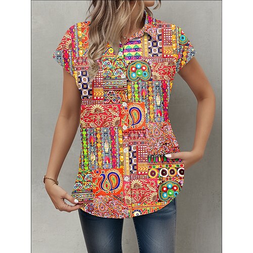 Blusa da donna floreale elegante quotidiana alla moda con maniche corte colletto regolare maglie lavoro quotidiano vacanza bianco rosa blu verde estate
