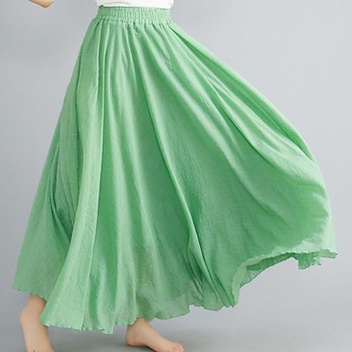Per donna Gonna Casual Maxi Vita media Gonne Semplice Arricciato Micro-elastico Quotidiano Streetwear Verde mela blu navy Nero Verde chiaro Estate Spandex Cotone
