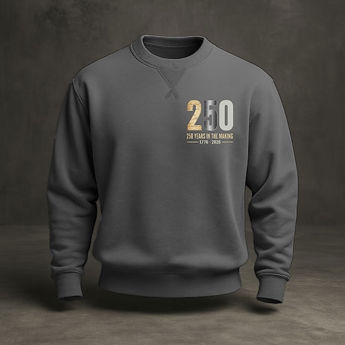 Felpa da uomo con grafica, bandiera americana, 250° anniversario, sportiva, moda, quotidiano, classica, girocollo, per attività all'aperto, vacanza, blu, nero, rosso, verde, stampa, primavera,