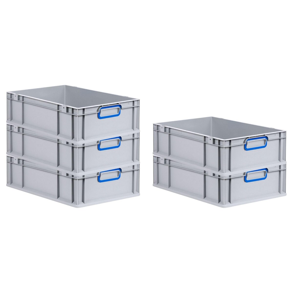 PROREGAL SparSet 5x Eurobox NextGen Economy mit Auflagedeckel & 4x Verschlüsse Blau, Griffe zu, HxBxT 22x40x60cm, 44L, Eurobehälter, Box