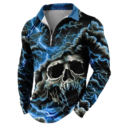 Giorno dei Morti Per uomo Teschio Personaggio Polo Manica Lunga Magliette polo Bavero Casual Scuro Abbigliamento quotidiano Abito da festa Stampa 3D Polo con cerniera a un quarto Primavera Autunno