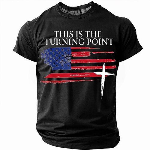 Anniversario dei 250 anni d'America T-Shirt Patriottica Cristiana per Uomini 'Questo è il Punto di Svolta' Maglietta Grafica con Croce e Bandiera Americana Fede e Libertà Maglietta a Maniche Corte