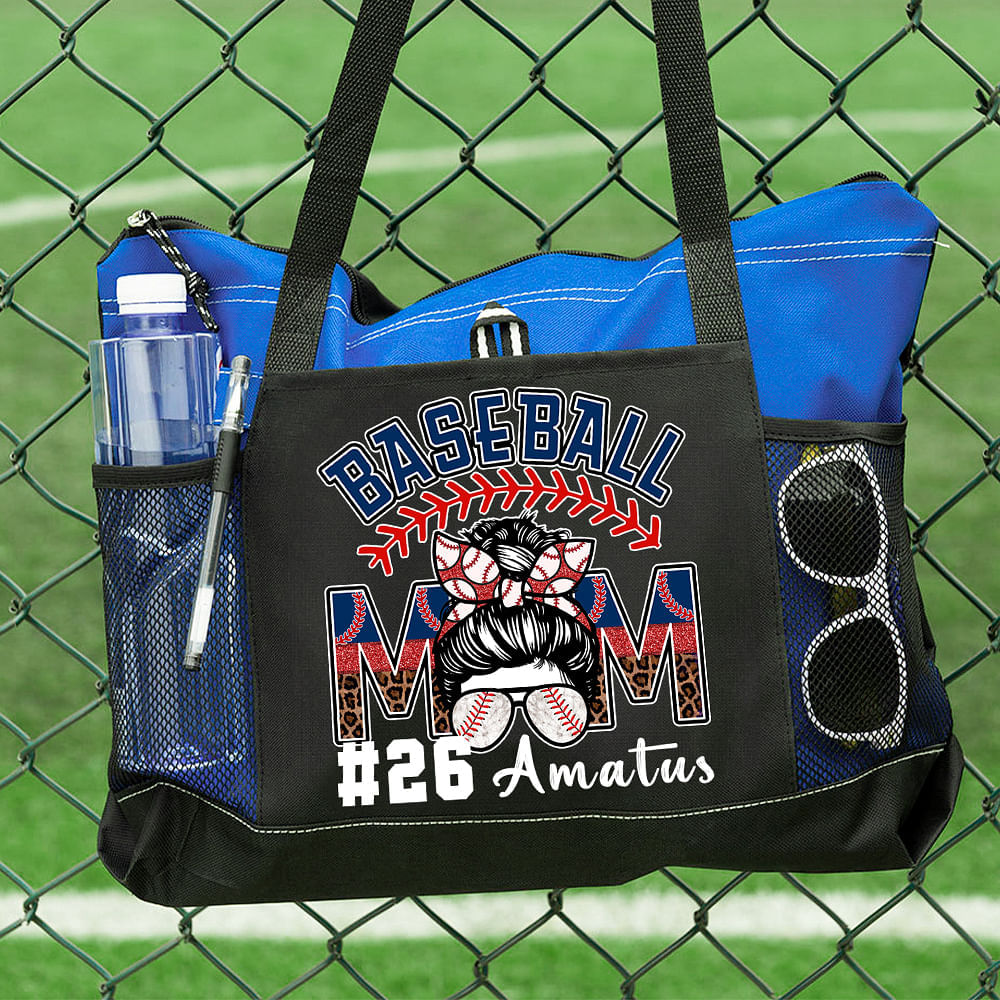 Gepersonaliseerde Glitter Leopard Team Color Cartoon Baseball Sport Bow Mom Tote Bag met Naam Game Day Accessoires Gift voor Baseball Mama