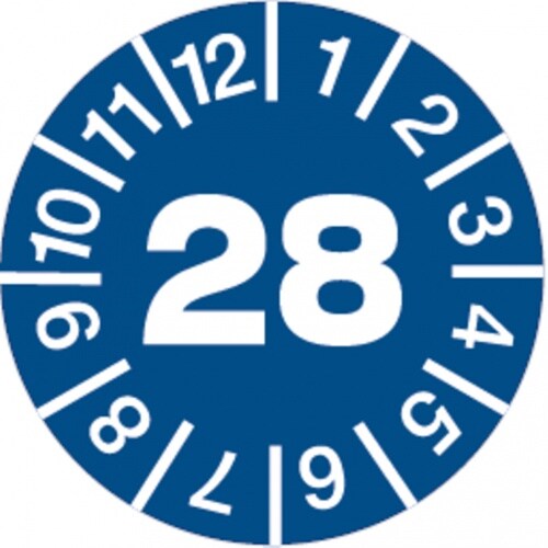 Dreifke® Aufkleber | Prüftetikett 28 blau/weiß - 20 mm Folie selbstklebend, 10 St