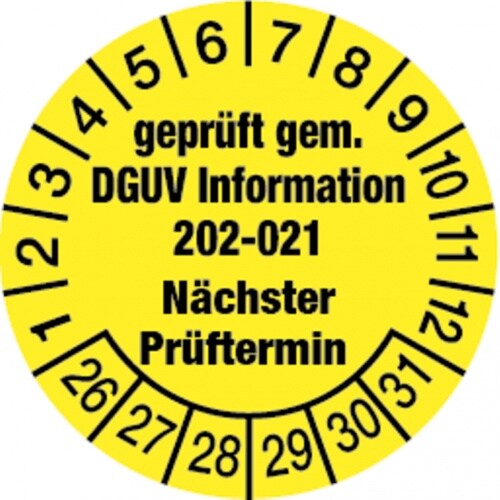 Dreifke® Prüfplakette, DGUV Information 202-021 Nächster Prüfter - 30 mm Folie selbstklebend, 10 St