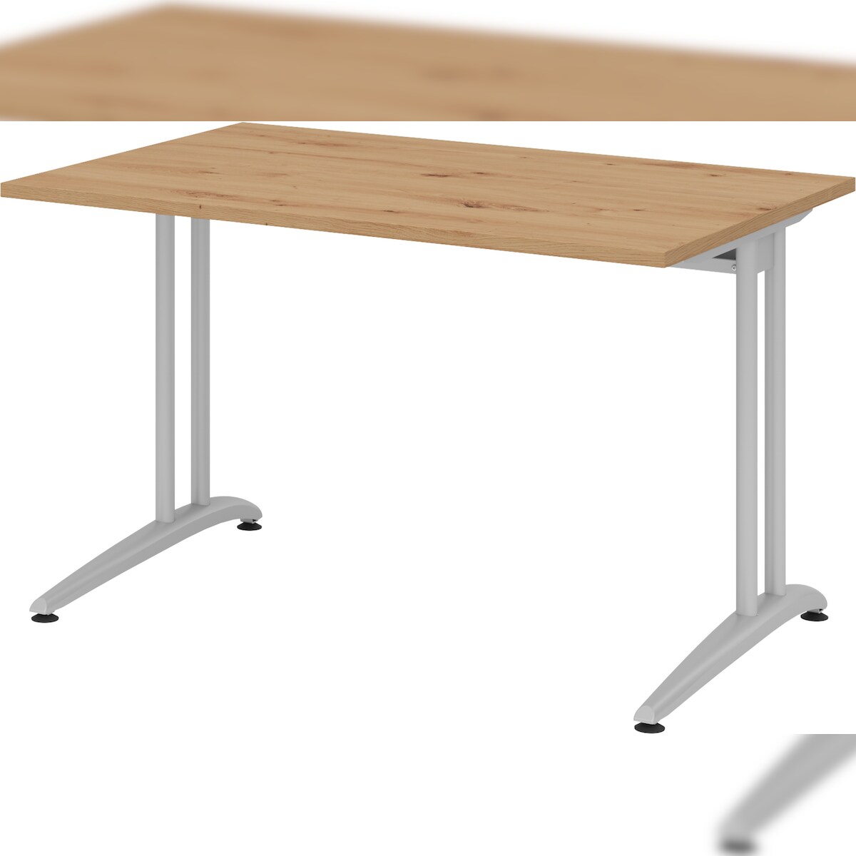 bümö Schreibtisch klein B-Serie 120x80 cm, Tischplatte aus Holz in Asteiche, Gestell aus Metall in Silber - PC Tisch, kleiner Computertisch für's